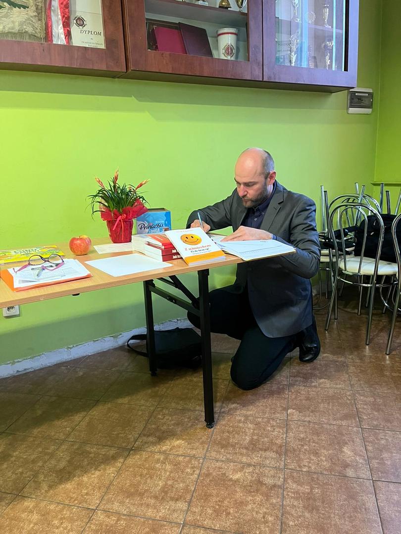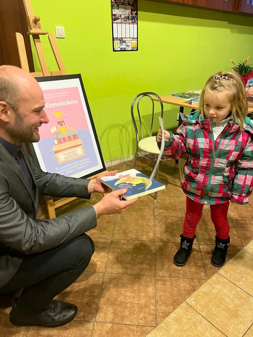 W ramach gali czytelników pogadankę przeprowadził dla gości pan Jacek Łapiński, który z wykształcenia jest prawnikiem, ale jego pasją jest czytanie, więc odwiedza biblioteki i zachęca do czytania, promuje zdrowy tryb życia i wartość wiedzy. Jest autorem książek: „Dlaczego warto czytać?!” i „ Z uśmiechem ci do twarzy”, obie zakupiła nasza biblioteka, więc można się z nimi zapoznać.